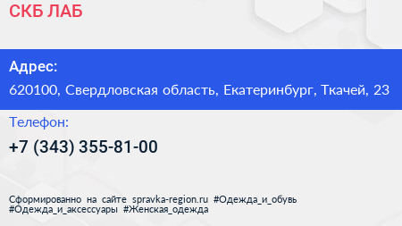 СКБ ЛАБ по адресу 620100, Свердловская область, Екатеринбург, Ткачей, 23 в дальнейшем Организация, размещена в следующих категориях: