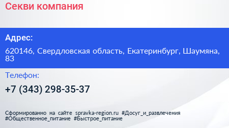 Секви, компания по адресу 620146, Свердловская область, Екатеринбург, Шаумяна, 83 в дальнейшем Организация, размещена в следующих категориях: