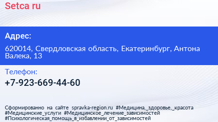 Setca.ru по адресу 620014, Свердловская область, Екатеринбург, Антона Валека, 13 в дальнейшем Организация, размещена в следующих категориях: