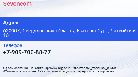 Sevencom по адресу 620007, Свердловская область, Екатеринбург, Латвийская, 16 в дальнейшем Организация, размещена в следующих категориях: