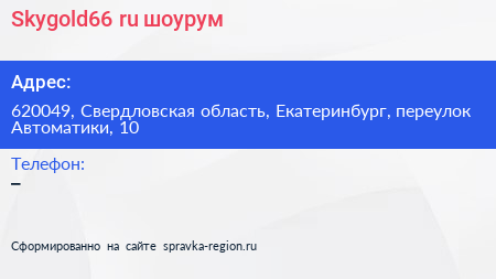 Skygold66.ru, шоурум по адресу 620049, Свердловская область, Екатеринбург, переулок Автоматики, 10 в дальнейшем Организация, размещена в следующих категориях: