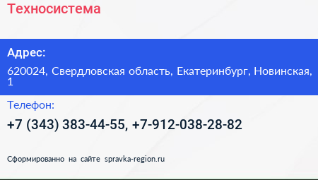 Техносистема по адресу 620024, Свердловская область, Екатеринбург, Новинская, 1 в дальнейшем Организация, размещена в следующих категориях: