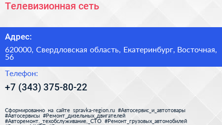 Телевизионная сеть по адресу 620000, Свердловская область, Екатеринбург, Восточная, 56 в дальнейшем Организация, размещена в следующих категориях: