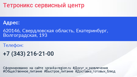Тетроникс, сервисный центр по адресу 620146, Свердловская область, Екатеринбург, Волгоградская, 193 в дальнейшем Организация, размещена в следующих категориях: