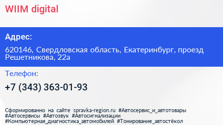 WIIM digital по адресу 620146, Свердловская область, Екатеринбург, проезд Решетникова, 22а в дальнейшем Организация, размещена в следующих категориях: