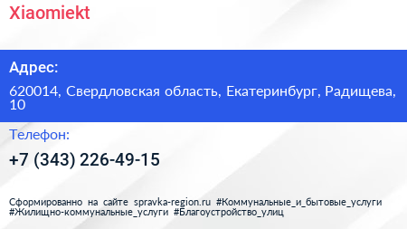Xiaomiekt по адресу 620014, Свердловская область, Екатеринбург, Радищева, 10 в дальнейшем Организация, размещена в следующих категориях: