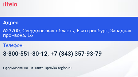 ittelo по адресу 623700, Свердловская область, Екатеринбург, Западная промзона, 16 в дальнейшем Организация, размещена в следующих категориях: