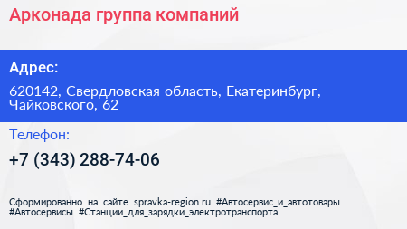 Арконада, группа компаний по адресу 620142, Свердловская область, Екатеринбург, Чайковского, 62 в дальнейшем Организация, размещена в следующих категориях: