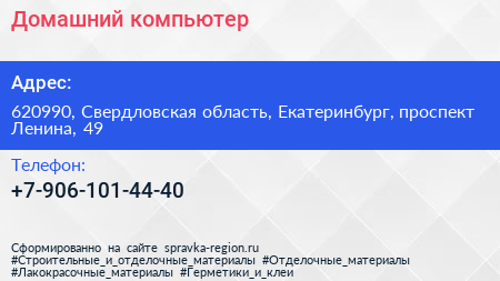 Домашний компьютер по адресу 620990, Свердловская область, Екатеринбург, проспект Ленина, 49 в дальнейшем Организация, размещена в следующих категориях:
