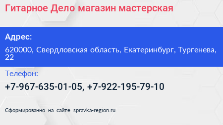 Гитарное Дело, магазин-мастерская по адресу 620000, Свердловская область, Екатеринбург, Тургенева, 22 в дальнейшем Организация, размещена в следующих категориях: