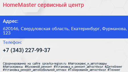 HomeMaster, сервисный центр по адресу 620146, Свердловская область, Екатеринбург, Фурманова, 123 в дальнейшем Организация, размещена в следующих категориях: