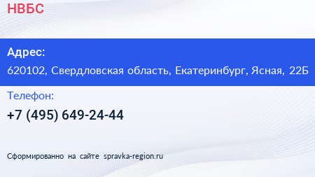 НВБС по адресу 620102, Свердловская область, Екатеринбург, Ясная, 22Б в дальнейшем Организация, размещена в следующих категориях: