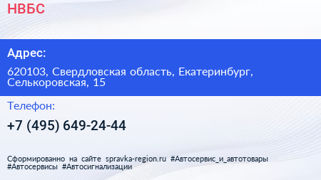 НВБС по адресу 620103, Свердловская область, Екатеринбург, Селькоровская, 15 в дальнейшем Организация, размещена в следующих категориях: