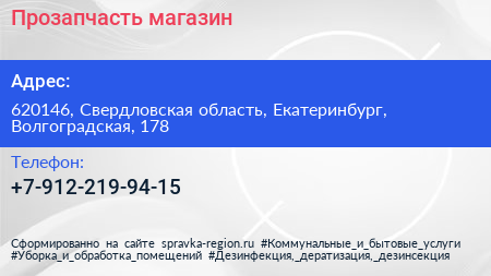Прозапчасть, магазин по адресу 620146, Свердловская область, Екатеринбург, Волгоградская, 178 в дальнейшем Организация, размещена в следующих категориях: