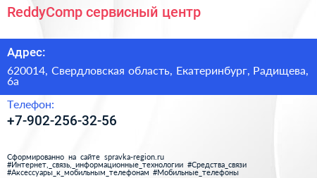 ReddyComp, сервисный центр по адресу 620014, Свердловская область, Екатеринбург, Радищева, 6а в дальнейшем Организация, размещена в следующих категориях: