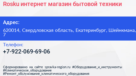 Rosku, интернет-магазин бытовой техники по адресу 620014, Свердловская область, Екатеринбург, Шейнкмана, 7 в дальнейшем Организация, размещена в следующих категориях: