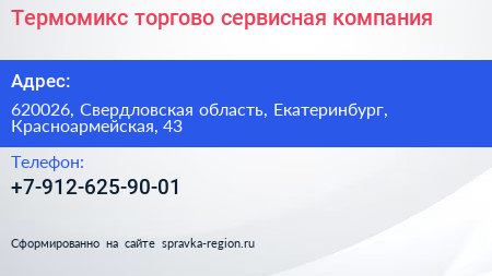 Термомикс, торгово-сервисная компания по адресу 620026, Свердловская область, Екатеринбург, Красноармейская, 43 в дальнейшем Организация, размещена в следующих категориях: