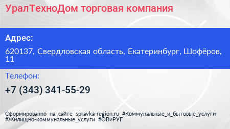УралТехноДом, торговая компания по адресу 620137, Свердловская область, Екатеринбург, Шофёров, 11 в дальнейшем Организация, размещена в следующих категориях: