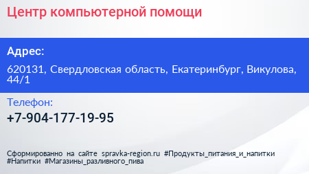 Центр компьютерной помощи по адресу 620131, Свердловская область, Екатеринбург, Викулова, 44/1 в дальнейшем Организация, размещена в следующих категориях: