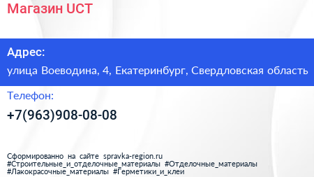Магазин UCT по адресу улица Воеводина, 4, Екатеринбург, Свердловская область в дальнейшем Организация, размещена в следующих категориях: