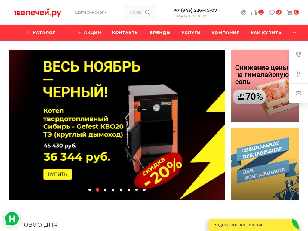100 печей.РУ, оптово-розничная компания по адресу 620033, Свердловская область, Екатеринбург, Проезжая, 172 в дальнейшем Организация, размещена в следующих категориях: