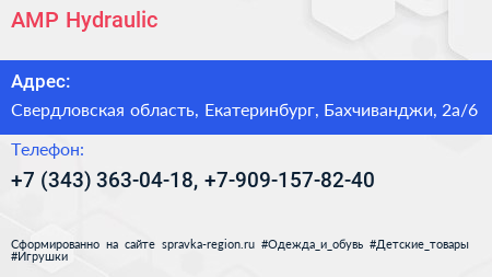 AMP Hydraulic по адресу Свердловская область, Екатеринбург, Бахчиванджи, 2а/6 в дальнейшем Организация, размещена в следующих категориях:
