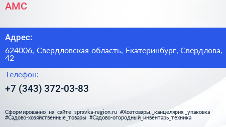АМС по адресу 624006, Свердловская область, Екатеринбург, Свердлова, 42 в дальнейшем Организация, размещена в следующих категориях: