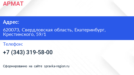 АРМАТ по адресу 620073, Свердловская область, Екатеринбург, Крестинского, 59/1 в дальнейшем Организация, размещена в следующих категориях: