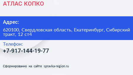 АТЛАС КОПКО по адресу 620100, Свердловская область, Екатеринбург, Сибирский тракт, 12 ст4 в дальнейшем Организация, размещена в следующих категориях: