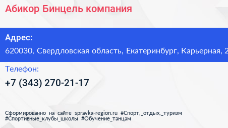 Абикор Бинцель, компания по адресу 620030, Свердловская область, Екатеринбург, Карьерная, 2 в дальнейшем Организация, размещена в следующих категориях: