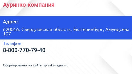 Ауринко, компания по адресу 620016, Свердловская область, Екатеринбург, Амундсена, 107 в дальнейшем Организация, размещена в следующих категориях: