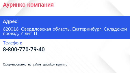 Ауринко, компания по адресу 620016, Свердловская область, Екатеринбург, Складской проезд, 7 лит Ц в дальнейшем Организация, размещена в следующих категориях: