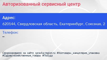 Авторизованный сервисный центр по адресу 620144, Свердловская область, Екатеринбург, Союзная, 2 в дальнейшем Организация, размещена в следующих категориях: