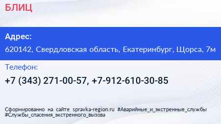 БЛИЦ по адресу 620142, Свердловская область, Екатеринбург, Щорса, 7м в дальнейшем Организация, размещена в следующих категориях: