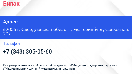 Бипак по адресу 620057, Свердловская область, Екатеринбург, Совхозная, 20а в дальнейшем Организация, размещена в следующих категориях: