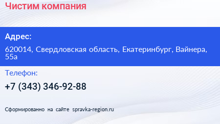Чистим, компания по адресу 620014, Свердловская область, Екатеринбург, Вайнера, 55а в дальнейшем Организация, размещена в следующих категориях: