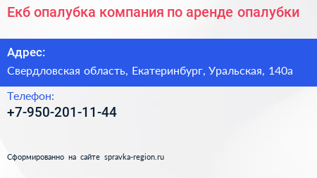 Екб-опалубка, компания по аренде опалубки по адресу Свердловская область, Екатеринбург, Уральская, 140а в дальнейшем Организация, размещена в следующих категориях: