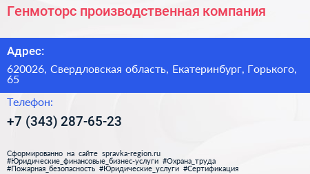 Генмоторс, производственная компания по адресу 620026, Свердловская область, Екатеринбург, Горького, 65 в дальнейшем Организация, размещена в следующих категориях:
