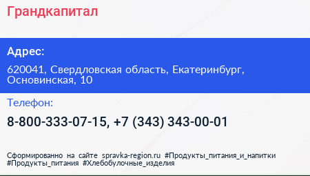 Грандкапитал по адресу 620041, Свердловская область, Екатеринбург, Основинская, 10 в дальнейшем Организация, размещена в следующих категориях: