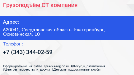 Грузоподъём-СТ, компания по адресу 620041, Свердловская область, Екатеринбург, Основинская, 10 в дальнейшем Организация, размещена в следующих категориях: