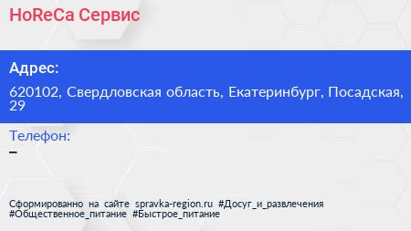 HoReCa Сервис по адресу 620102, Свердловская область, Екатеринбург, Посадская, 29 в дальнейшем Организация, размещена в следующих категориях: