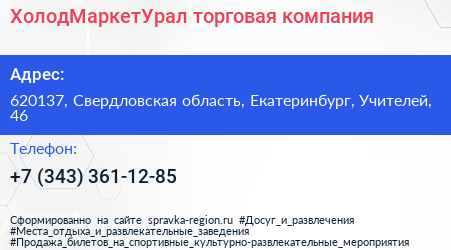 ХолодМаркетУрал, торговая компания по адресу 620137, Свердловская область, Екатеринбург, Учителей, 46 в дальнейшем Организация, размещена в следующих категориях: