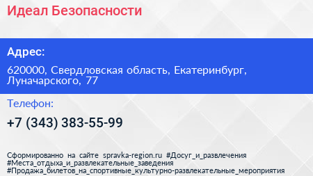 Идеал Безопасности по адресу 620000, Свердловская область, Екатеринбург, Луначарского, 77 в дальнейшем Организация, размещена в следующих категориях: