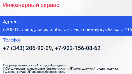 Инженерный сервис по адресу 620041, Свердловская область, Екатеринбург, Омская, 115 в дальнейшем Организация, размещена в следующих категориях: