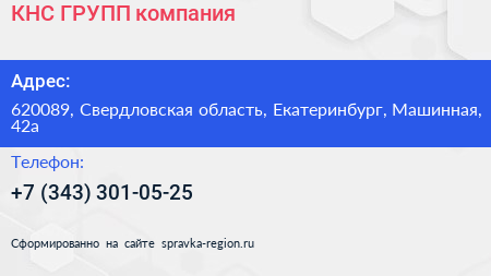 КНС-ГРУПП, компания по адресу 620089, Свердловская область, Екатеринбург, Машинная, 42а в дальнейшем Организация, размещена в следующих категориях: