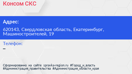 Консом СКС по адресу 620143, Свердловская область, Екатеринбург, Машиностроителей, 19 в дальнейшем Организация, размещена в следующих категориях: