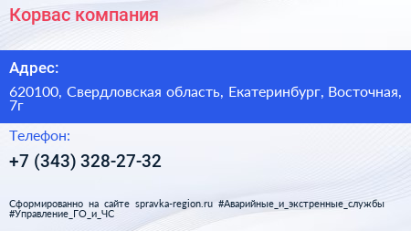 Корвас, компания по адресу 620100, Свердловская область, Екатеринбург, Восточная, 7г в дальнейшем Организация, размещена в следующих категориях: