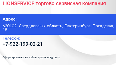 LIONSERVICE, торгово-сервисная компания по адресу 620102, Свердловская область, Екатеринбург, Посадская, 18 в дальнейшем Организация, размещена в следующих категориях: