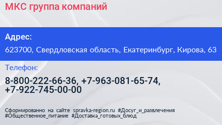 МКС, группа компаний по адресу 623700, Свердловская область, Екатеринбург, Кирова, 63 в дальнейшем Организация, размещена в следующих категориях: