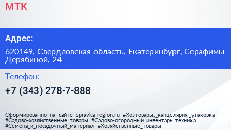 МТК по адресу 620149, Свердловская область, Екатеринбург, Серафимы Дерябиной, 24 в дальнейшем Организация, размещена в следующих категориях:
